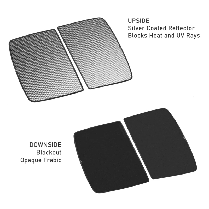 Constructed of lightweight fabric with a collapsible rigid frame, the Tesla Model Y Glass Roof Sunshade further reduces heat transmission into the cabin by blocking the direct solar thermal load. Easily removable, the sunshade is installed onto the interior of the glass roof with provided clips.